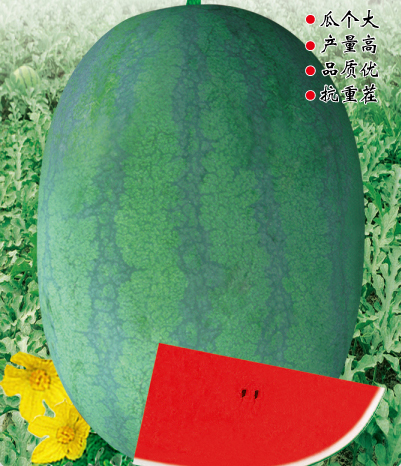 ■ 特征特性 :早中熟種,坐果至成熟28天左右,全生育期90天左右。植株長(zhǎng)勢(shì)穩(wěn)健,抗病抗逆性強(qiáng),生態(tài)適應(yīng)性廣,易坐果。果實(shí)橢圓形,果皮墨綠色底上覆暗條帶,果面光滑無(wú)棱帶蠟粉。瓤色深紅,瓤質(zhì)酥脆,中心糖14%左右,口感好,風(fēng)味佳。平均單果重8-10kg左右,大者20kg以上(特殊栽培),一般畝產(chǎn)6000公斤以上。皮厚1.0cm左右,果皮硬度強(qiáng),耐儲(chǔ)運(yùn)。高抗枯萎病抗重茬,兼抗炭疽病和病毒病,在2年重茬地種植,其產(chǎn)量品質(zhì)無(wú)明顯差異。綜合性狀優(yōu)于目前抗病品種。