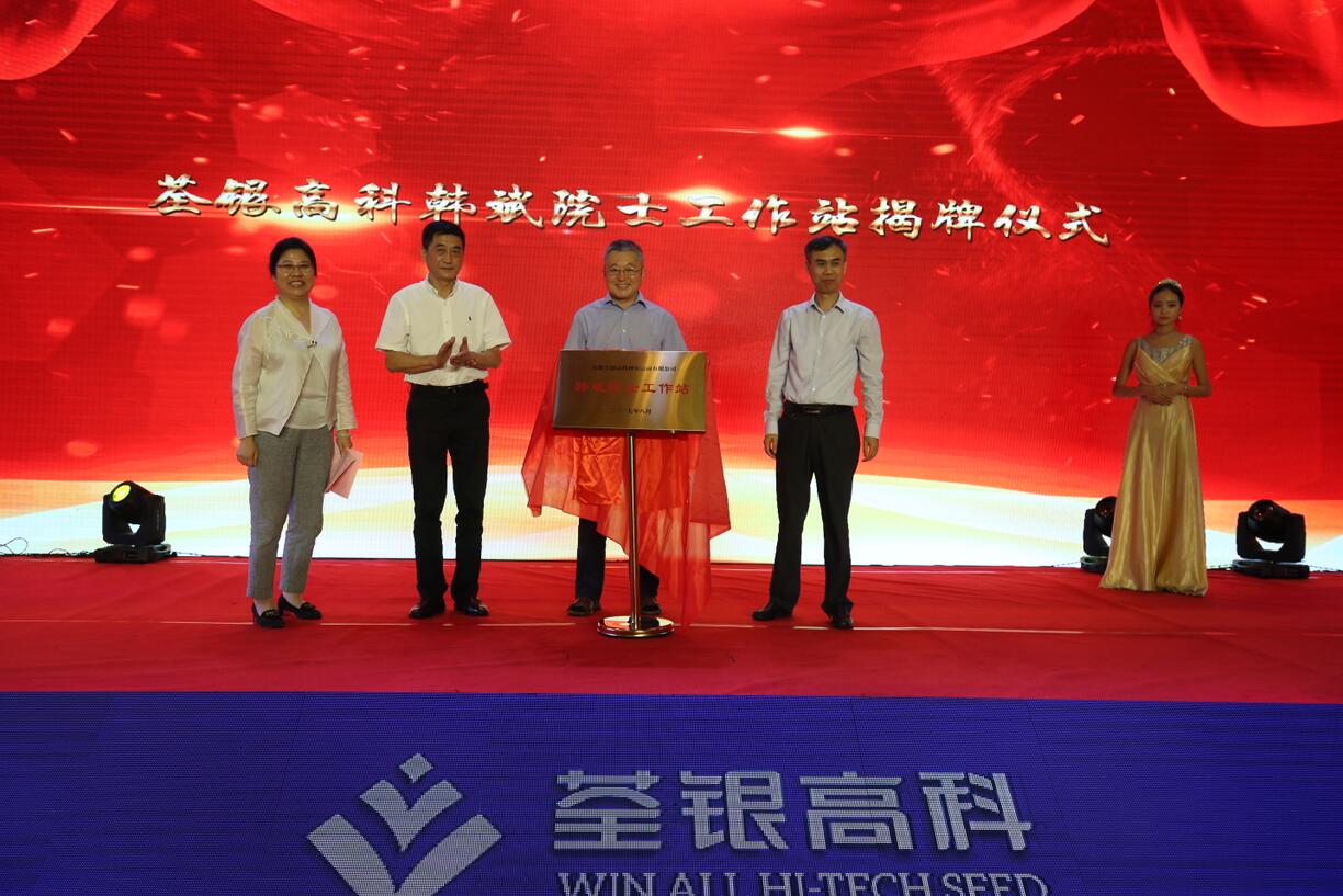 在29日下午會(huì)上,農(nóng)業(yè)部科教司廖西元司長(zhǎng)、安徽省科學(xué)技術(shù)廳宛曉春廳長(zhǎng)、中科院韓斌院士與荃銀高科張琴董事長(zhǎng)共同為荃銀高科“韓斌院士工作站”揭牌。
