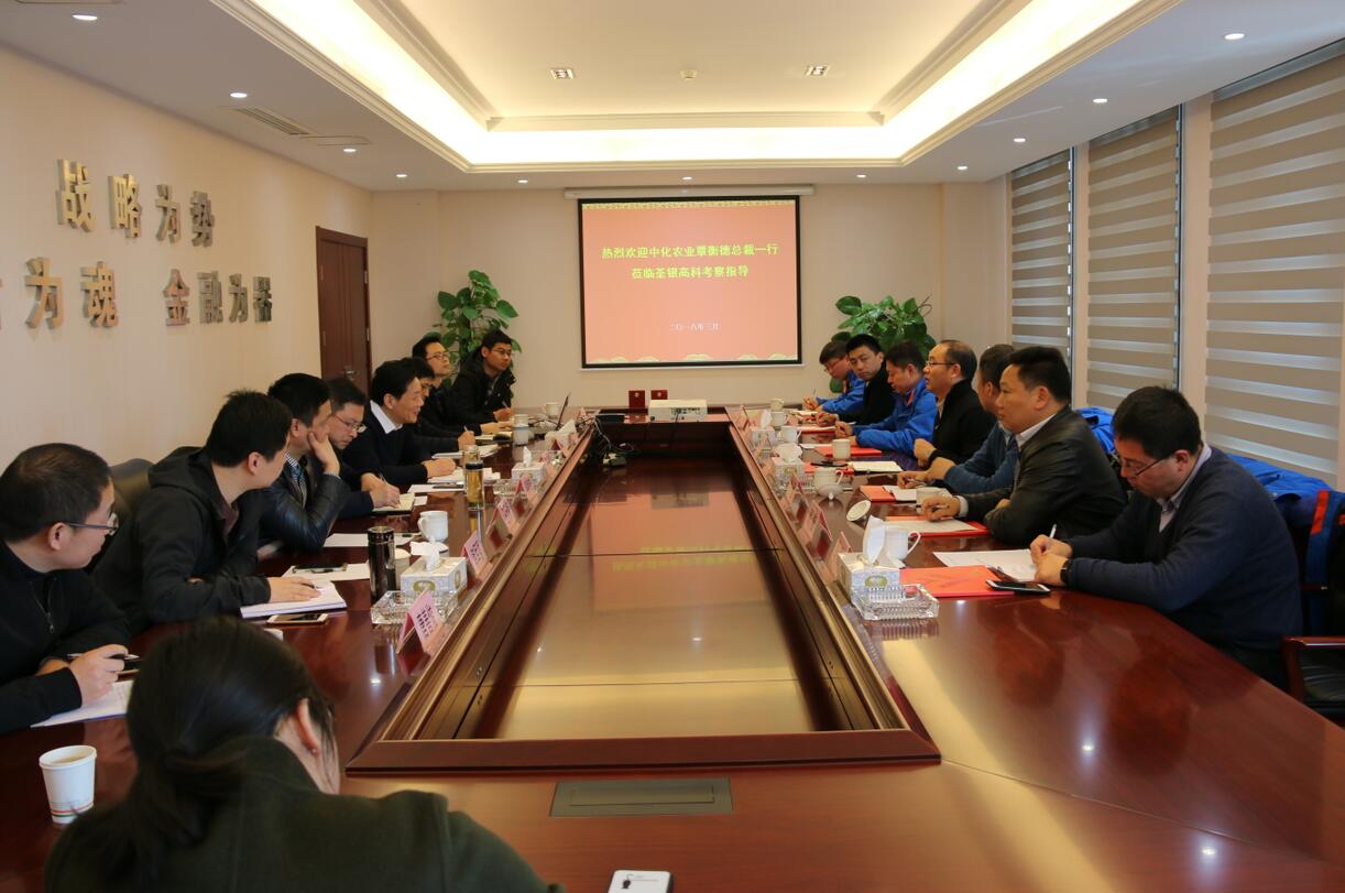 2017年3月10日,中化農(nóng)業(yè)覃衡德總裁蒞臨荃銀高科考察指導(dǎo)。荃銀高科總經(jīng)理助理王玉林熱情接待了覃衡德總裁一行,并陪同參觀、交流、座談。