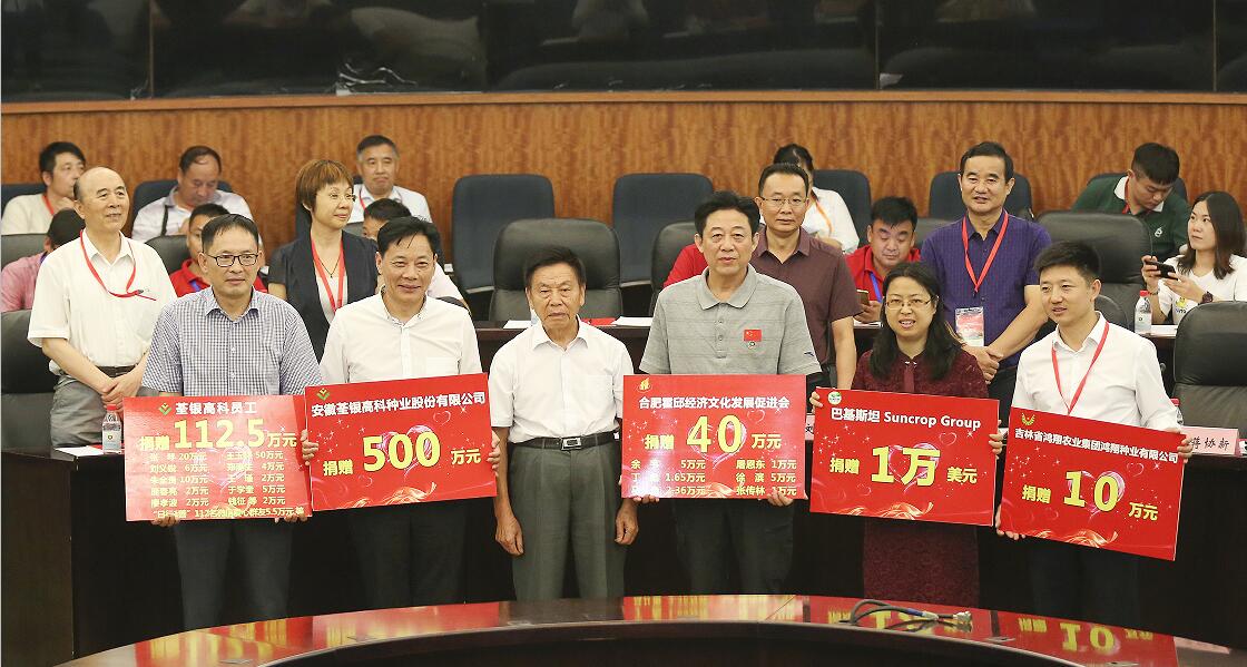 善人者,人亦敬之。張海銀種業(yè)基金會五年來的公益慈善活動得到社會各界愛心人士和愛心單位600余次的的慷慨捐贈,累計950多萬元。會上還進行了基金會2018年公益愛心捐贈儀式。荃銀高科母子公司高管和員工多次參與基金會濟困助學(xué)公益慈善活動,本次捐贈112.5萬元;吉林鴻翔種業(yè)集團鴻翔種業(yè)有限公司捐贈10萬元;巴基斯坦Suncrop Group(陽光作物集團)捐贈1萬美元;合肥霍邱經(jīng)濟文化發(fā)展促進會及會員為基金會貧困助學(xué)項目捐贈40萬元;安徽荃銀高科種業(yè)股份有限公司捐贈500萬元?;饡淳栀浫司栀浀囊庠负驮跇I(yè)務(wù)范圍內(nèi)開展公益項目和慈善活動。