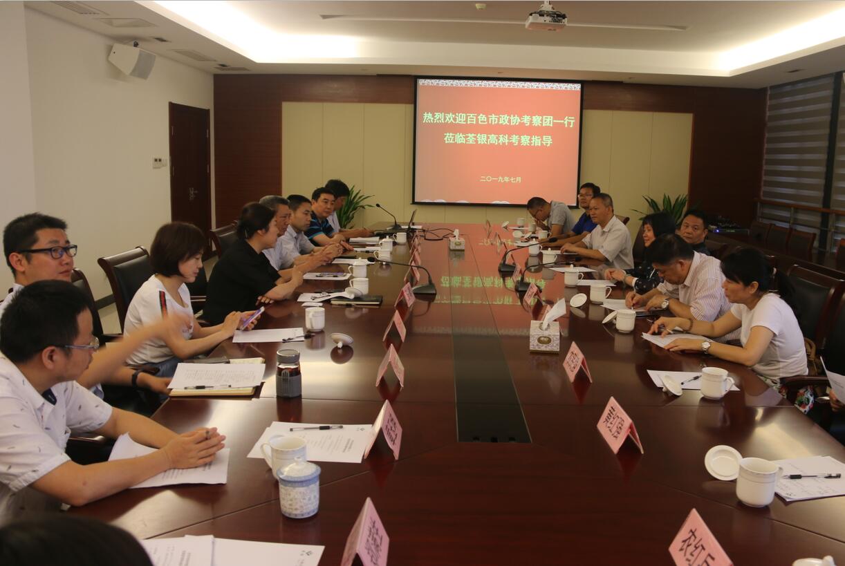 ??? 在調(diào)研考察座談會(huì)上,荃銀高科總經(jīng)理張琴女士對(duì)百色市政協(xié)考察團(tuán)一行到來(lái)表示熱烈歡迎,副總經(jīng)理張從合先生就公司發(fā)展和科技創(chuàng)新情況等進(jìn)行了匯報(bào)??疾靾F(tuán)一行聽(tīng)取匯報(bào)后,對(duì)荃銀高科取得的成績(jī)及創(chuàng)新做法給予肯定,并希望雙方兩地能夠進(jìn)一步加強(qiáng)合作,實(shí)現(xiàn)共同發(fā)展。