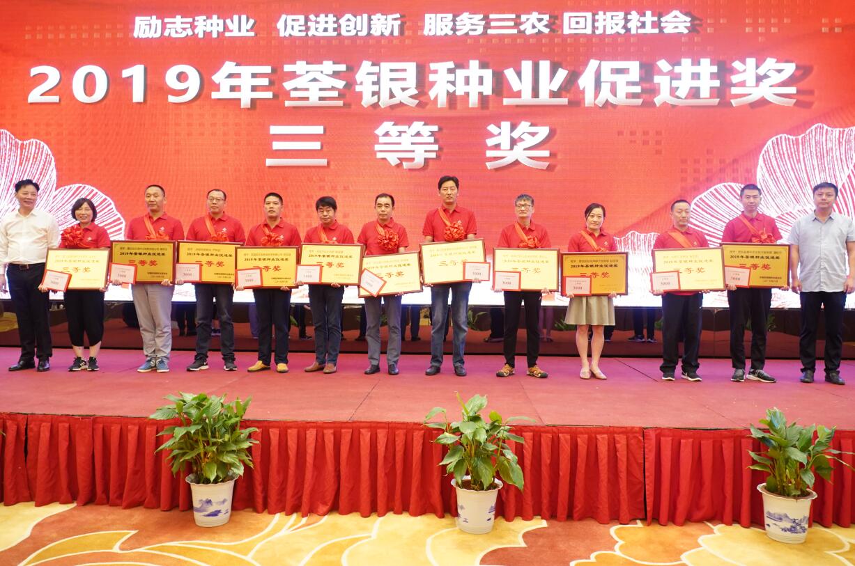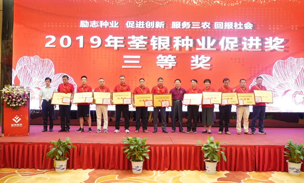 ??? 守初心擔使命,荃銀人深知企業(yè)的發(fā)展離不開社會的支持。會上,安徽張海銀種業(yè)基金會監(jiān)事鄭滿生先生宣讀“荃銀種業(yè)促進獎”頒獎文件,大會向35名在優(yōu)質(zhì)水稻推廣和良種服務等方面取得優(yōu)異成績的代表頒發(fā)了“荃銀種業(yè)促進獎”專項獎。