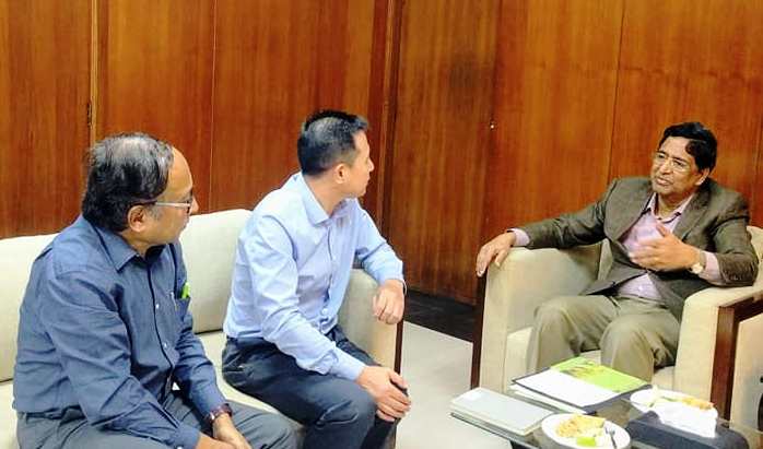 ??? 會見伊始,拉扎克部長對荃銀高科一行來訪表示熱烈歡迎,在聽取了荃銀高科過去十多年間在孟加拉推廣雜交水稻與優(yōu)質(zhì)蔬菜等農(nóng)作物良種、開展本土化品種選育和種子生產(chǎn)情況匯報后,給予高度贊賞與肯定。拉扎克部長介紹了孟加拉糧食生產(chǎn)及農(nóng)業(yè)現(xiàn)狀,農(nóng)業(yè)部當前鼓勵農(nóng)民以非傳統(tǒng)種植代替過去的傳統(tǒng)作物種植,以獲得更高經(jīng)濟效益。他建議,荃銀高科作為中國知名種業(yè)高科技企業(yè),對亟待加強的孟加拉食品加工業(yè)進行投資,該國農(nóng)業(yè)部將在企業(yè)用地、擴大規(guī)模方面給予支持,提供保障。他表示,將對荃銀高科與孟加拉農(nóng)業(yè)部農(nóng)業(yè)發(fā)展公司在雨季水稻新品種選育及種子生產(chǎn)領(lǐng)域方面的合作給予積極支持。