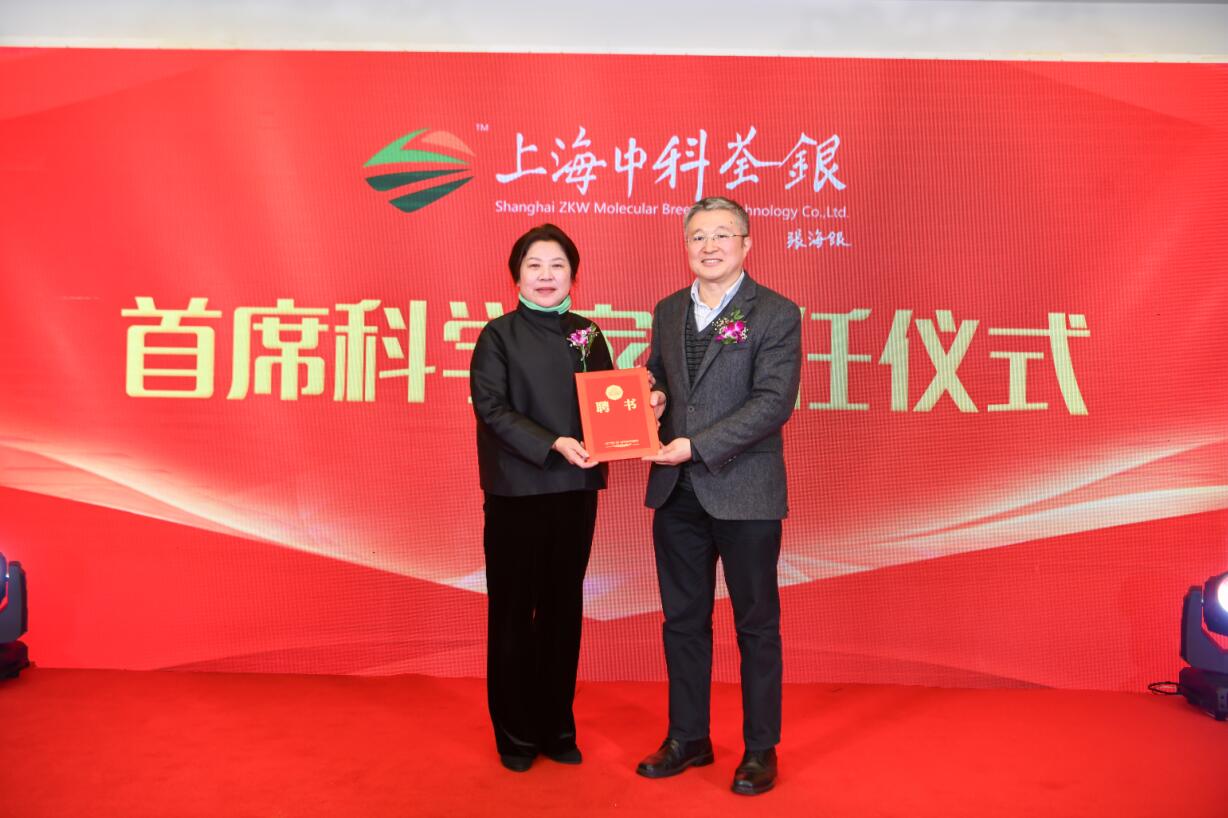 ? ? ?韓斌院士在致辭中首先向關(guān)心支持上海中科荃銀的各位領(lǐng)導、嘉賓表示感謝。他表示,基礎(chǔ)研究與應用研究結(jié)合,一定能為育種創(chuàng)新開辟出新路子。上海中科荃銀的成立既有挑戰(zhàn),更是機遇,上海中科荃銀各團隊將珍惜機遇,努力為中國種業(yè)技術(shù)創(chuàng)新與技術(shù)進步作貢獻!會上舉行了上海中科荃銀首席科學家聘任儀式,上海中科荃銀董事長張琴女士為韓斌院士頒發(fā)聘任證書。